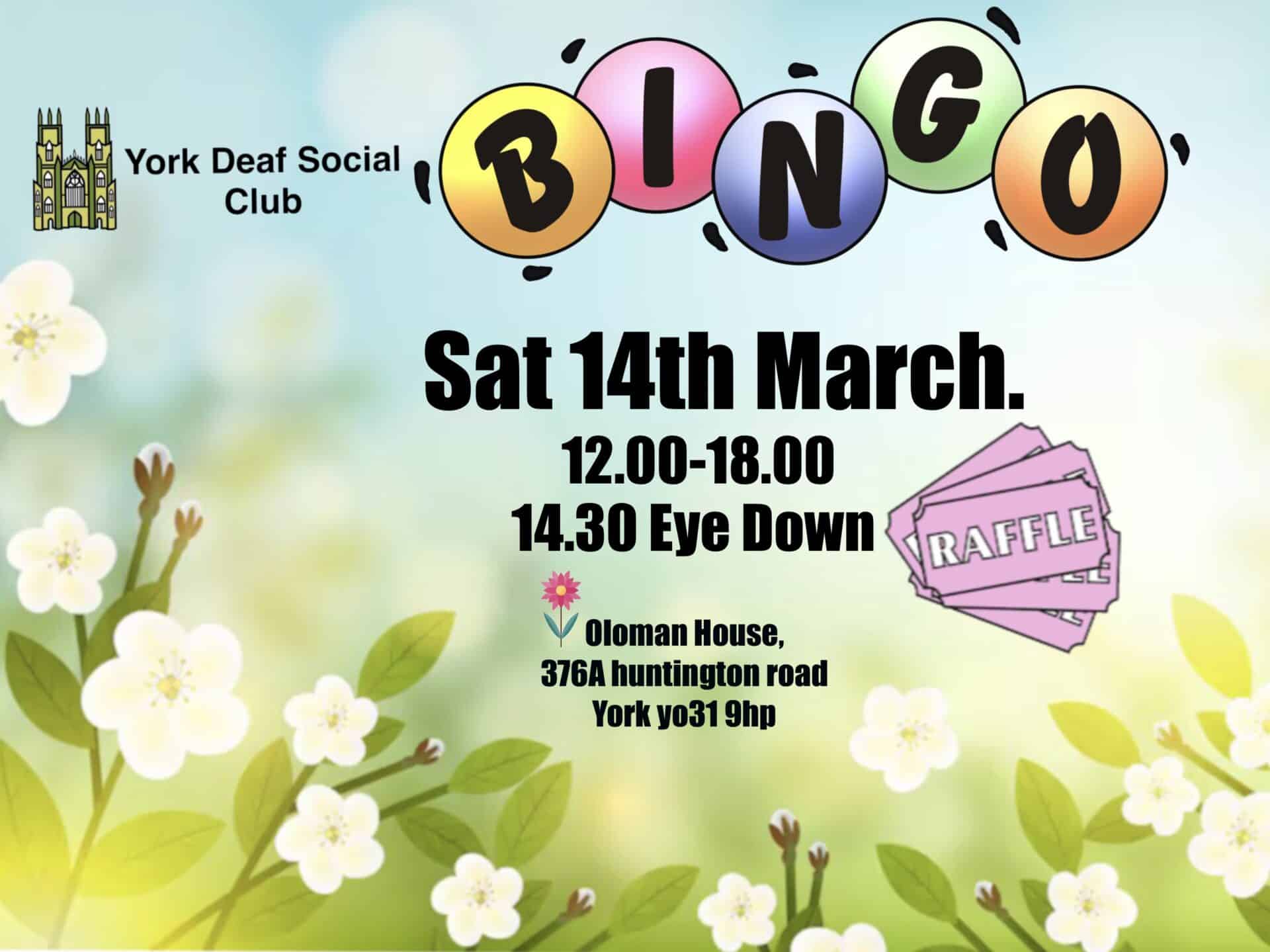 Saturday 14- YDSC Bingo 12-6pm